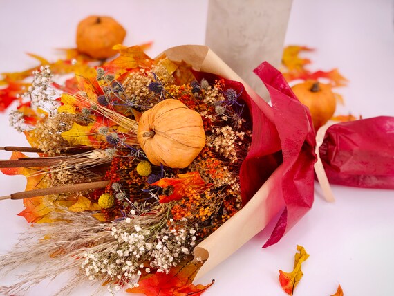 Autumn Dry Flowers Fall Bouquet, Everlasting Arrangement